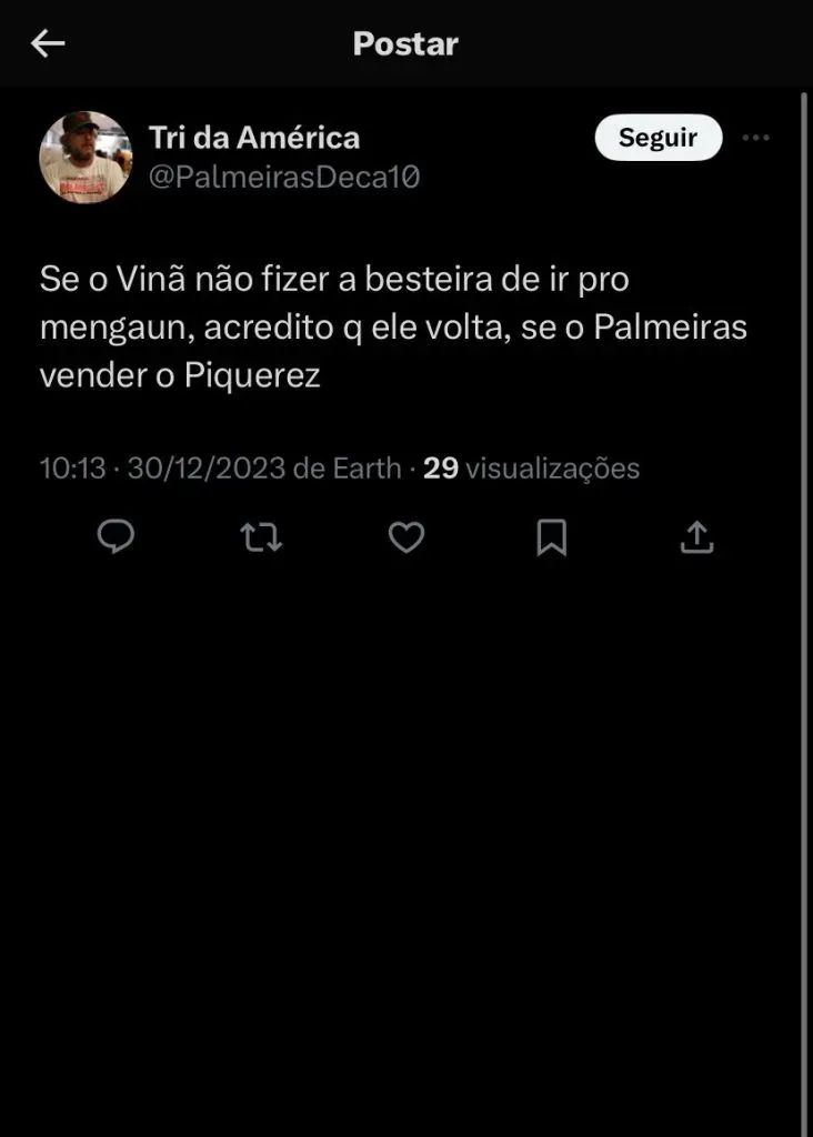 Segundo informado, o Flamengo está interessado em Juninho Capixaba, jogador do Red Bull Bragantino. Com isso, a torcida do Palmeiras enxerga que o Rubro-Negro está com dificuldades em nrelação a Viña.