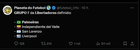 Além disso, encarar um time argentino como o San Lorenzo é sempre difícil. Logo na estreia, e fora de casa, a equipe comandada por Abel Ferreira terá que encarar os hermanos em um jogo que promete ser bem difícil.