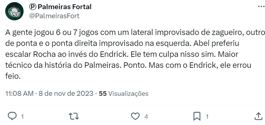 Muitos jornalistas e torcedores apontam que Endrick demorou para virar titular do Alviverde. Uma grande crítica para Abel Ferreira foi ter deixado a joia palmeirense no banco contra o Boca Juniors.