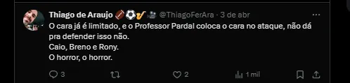 O ex-lateral ainda fez questão de comentar que o jogador precisa pôr a cabeça no lugar e foque em defender e atuar em alto nível pelo seu time, em vez de focar em provocações e alfinetadas ao seu ex-time.