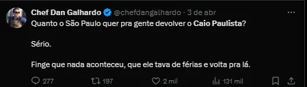 Muitas pessoas ligadas ao futebol já comentaram sobre a situação do lateral-esquerdo. Ele ainda tentará dar a volta por cima para se recuperar e repetir o bom futebol que apresentou no Tricolor Paulista em 2023.