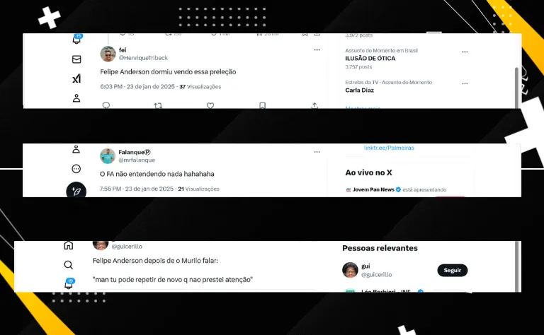 Só que houve os maliciosos que não tiraram os olhos de Felipe Anderson, ao lado de Murilo. Muitos chegaram a ironizar no Instagram e no X (antigo Twitter) que o camisa 9 estava ‘dormindo’.