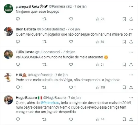 De qualquer forma, Leila Pereira trouxe 3 peças até aqui (Bruno Rodrigues, Caio Paulista e Aníbal Moreno), mas estaria com negociações sigilosas por mais um meio-campista, já que Veiga não tem substituto.