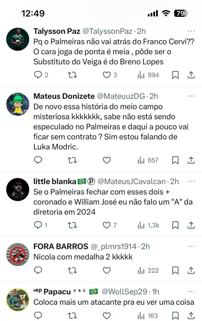 “A informação que me passaram é que esse meia já está em negociações. Eu não faço nem ideia de quem seja. Se rolar, o Palmeiras pretende anunciar o mais rápido possível”, revelou Nicola em seu vídeo no YouTube.
