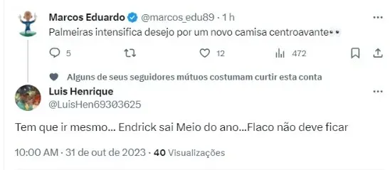 Com a ida de Endrick ao Real Madrid no meio do ano que vem, a posição vai ficar dependente de Rony, que vive má fase e pode, inclusive, ser negociado, além de Flaco López, que teve alguns lampejos, mas nunca se firmou.