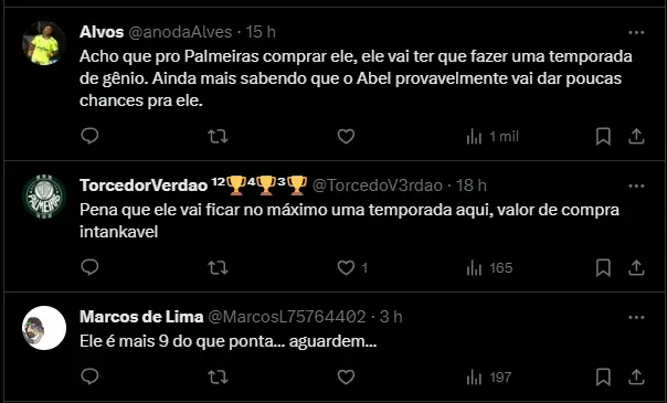 A torcida do Palmeiras espera ansiosamente pela chegada de Lázaro, que estava no Almería, da Espanha. O brasileiro chega por empréstimo, com opção de compra em torno de 13 milhões de euros, segundo o GE.