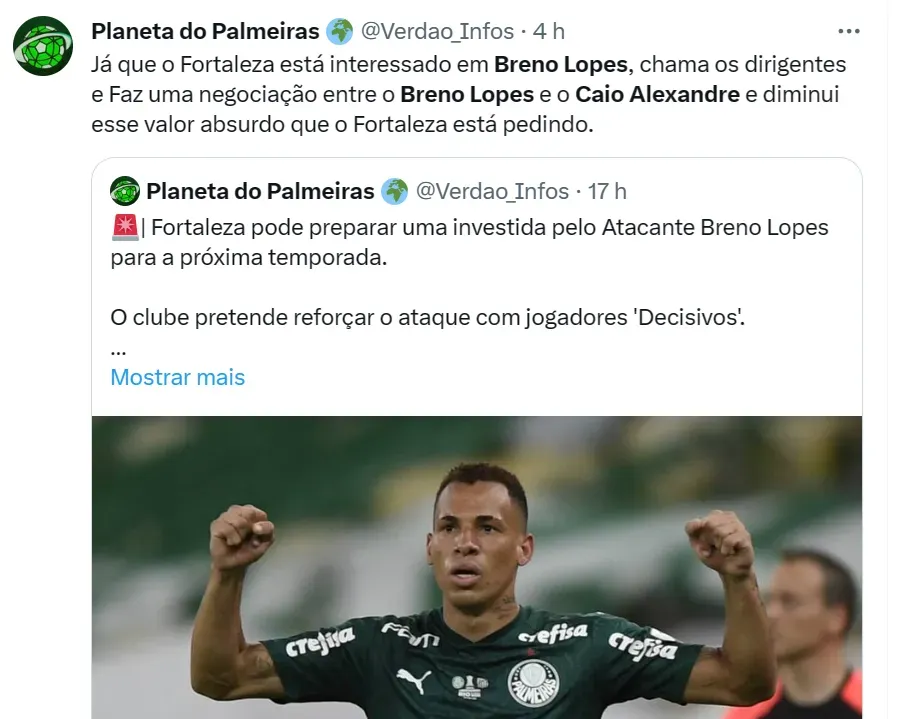 Você concorda com a \'troca\' Breno Lopes/Caio Alexandre entre Palmeiras e Fortaleza?