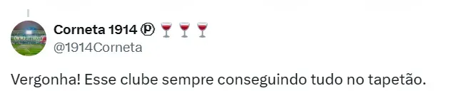 “Se comete um ato grave e para não ser punido levanta o dedo e pede desculpas? E mais, vaza-se um vídeo antes da transação (disciplinar esportiva) ser assinada. Acho que estamos perdendo por completo a noção do que é racional, em uma situação como essa”, completou.