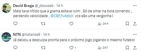 “É um gramado que nos vai deixar marcas para o próximo jogo. Vocês viram a dificuldade de quem entrou, quem iniciou. Os jogadores chegaram no vestiário e nem força tinham para tirar a roupa”, declarou o comandante palestrino em sua entrevista coletiva.