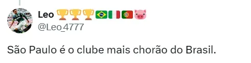 “Mas ganhar não dá o direito a vocês de meter o bico onde não são chamados! Querer apitar o jogo, querer mudar o futebol brasileiro não dá. Coloquem-se no lugar de vocês! E continuem ganhando se podem! Arrogância, prepotência e esse jeito esnobe de ser o povo não aguenta mais”, completou o ex-meia da Seleção Brasileira.