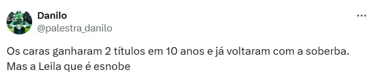 Na última terça-feira (5), Leila Pereira, presidente do Palmeiras, deu entrevista ao GE e afirmou que a confusão só aconteceu por “inveja ao trabalho ímpar de Abel”. No entanto, um ídolo do Tricolor não concordou com a mandatária.