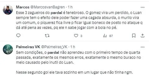 Chamou atenção como Abel foi tratado nas redes sociais, pois uma semana atrás foi considerado o comandante de uma reviravolta épica, nesta quinta-feira (8), o apelido de ‘pardal’ e muitos xingamentos foram direcionados ao treinador.