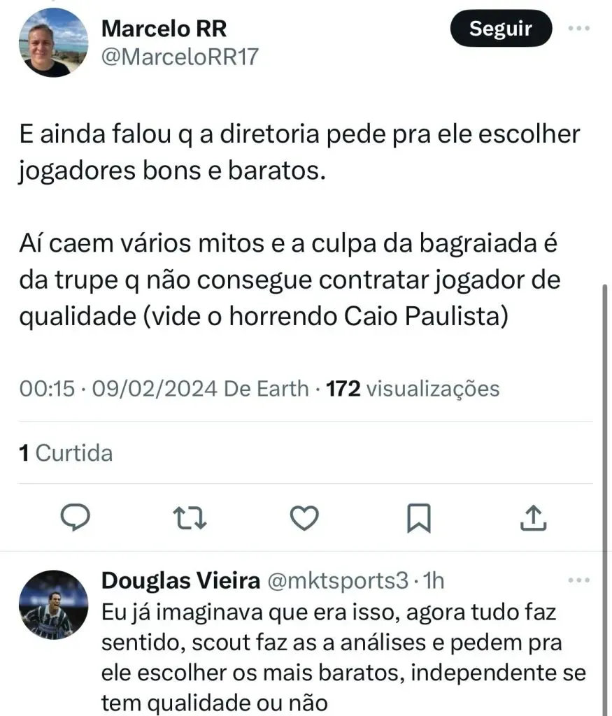 O treinador salientou que não pode vender jogadores como Breno Lopes, que está na mira do Vasco, por exemplo, porque o time tem dificuldades de contratar. Por conta disso, o português não quer a saída do atleta e confia no potencial do jogador.