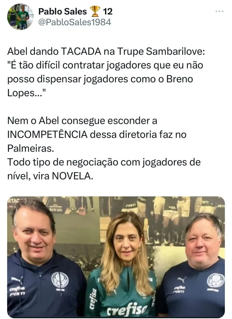 Abel está certo em criticar Leila Pereira