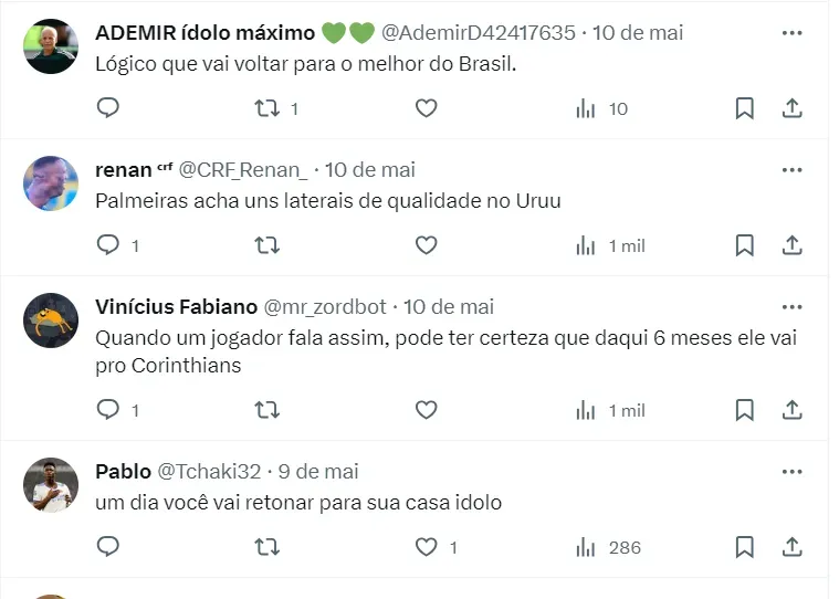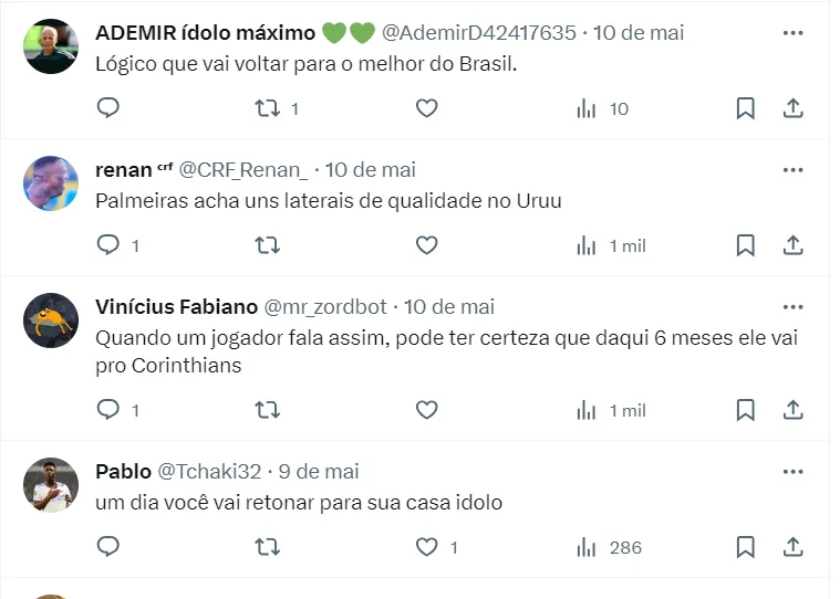 Mas, diante das movimentações que vem acontecendo no mercado visando o próximo ano, o Palmeiras pode ver um velho conhecido da torcida reforçando um rival direto em 2024. De acordo com informações do comunicador Chico Garcia, Matias Viña entrou no radar do Corinthians.