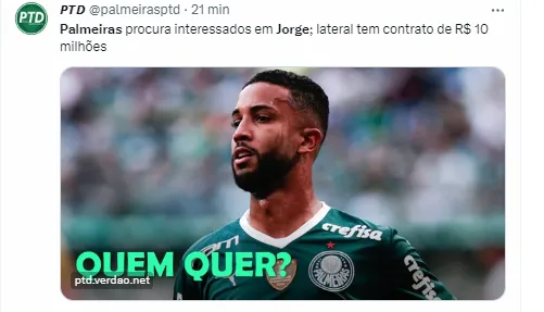Se por um lado, o Palestra busca contratações, por outro, a equipe quer acertar saídas de jogadores que não estão nos planos de Abel para a próxima temporada. Um desses casos é o do lateral-esquerdo Jorge.