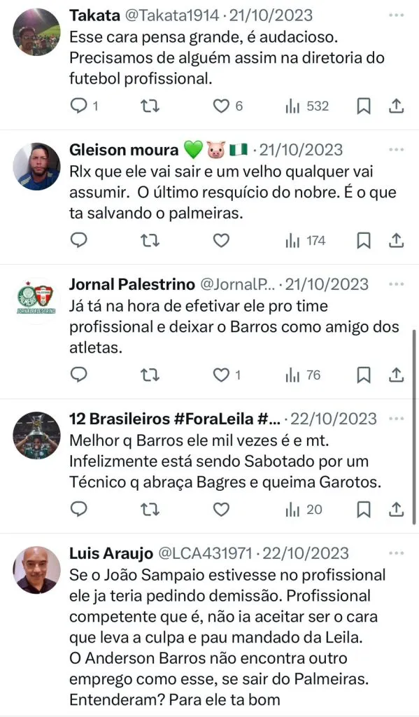 “O Corinthians não é o primeiro que time que tive proposta para assumir o departamento profissional. Eu sou muito feliz no Palmeiras e muito feliz com as pessoas que tem o Palmeiras. O clube é feito de pessoas, não adianta ter essa estrutura se tem um ambiente ruim”, disse o diretor que continuou.