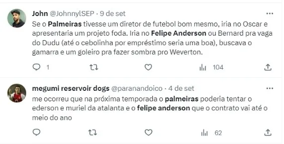 Torcida do Palmeiras pede Felipe Anderson: