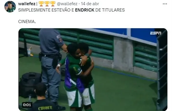 Endrick participou do lance que abriu o placar para o Verdão, o atacante foi derrubado por João Paulo no início do primeiro tempo. Veiga converteu a cobrança, abrindo o placar para o Palmeiras.