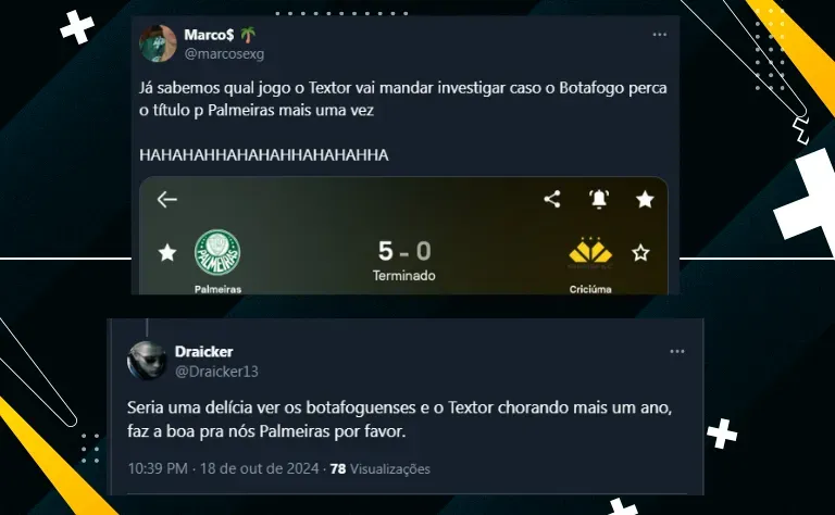 Por mais que o norte-americano não tenha feito nenhuma menção direta ao Palmeiras, a declaração acabou repercutindo não só entre torcedores do Glorioso, mas também entre palmeirenses.