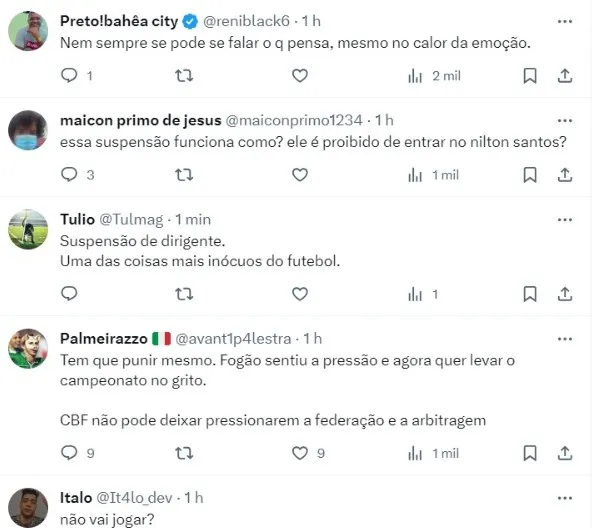 Repercussão entre torcidas de Botafogo e Palmeiras