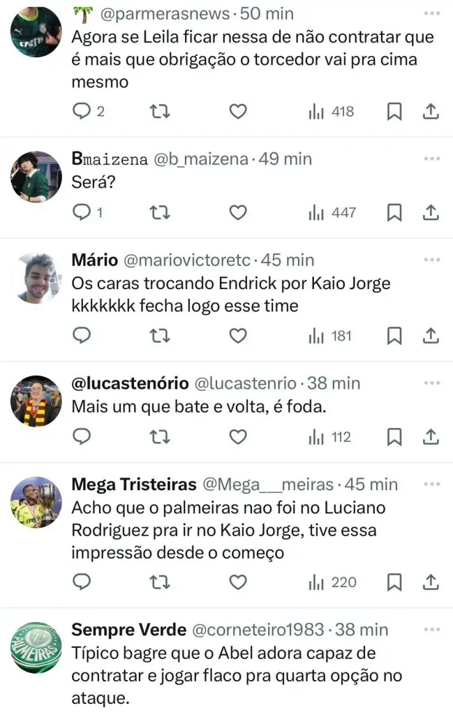 Uma outra opção seria o atacante Rony. O jogador desperta interessa de times da Rússia e do Oriente Médio, mas Abel vetou a saída do camisa 10 e pediu para Leila não vendê-lo. Porém, devido a má fase, o profissional exige mais um artilheiro na equipe.