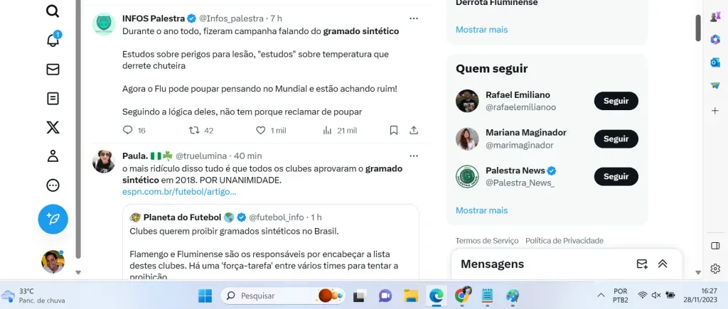 Ainda segundo o youtuber rubro-negro, Landim está liderando com o Fluminense e outros clubes da Série A uma manobra para barrar o gramado sintético, típico do Allianz Parque, do Nílton Santos, do Botafogo, e da Ligga Arena, do Athletico-PR.