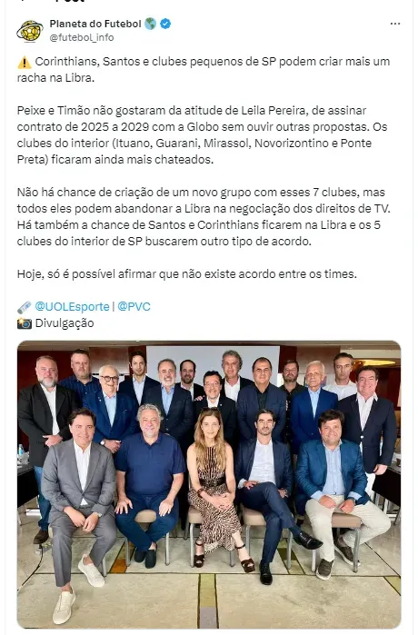 Os dois principais blocos são a Libra e a Liga Forte Futebol. Porém, a última informação trazida pelo PVC é que a presidente do Palmeiras, Leila Pereira, pode causar um grande problema.