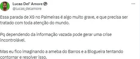 De acordo com informações apuradas pelo jornalista Danilo Lavieri, do site Uol, uma caça às bruxas foi instaurada no Alviverde Paulista e o possível x-9 que estaria vazando informações estaria sendo procurado no Palmeiras. A ideia é resolver esse problema o mais rápido possível.