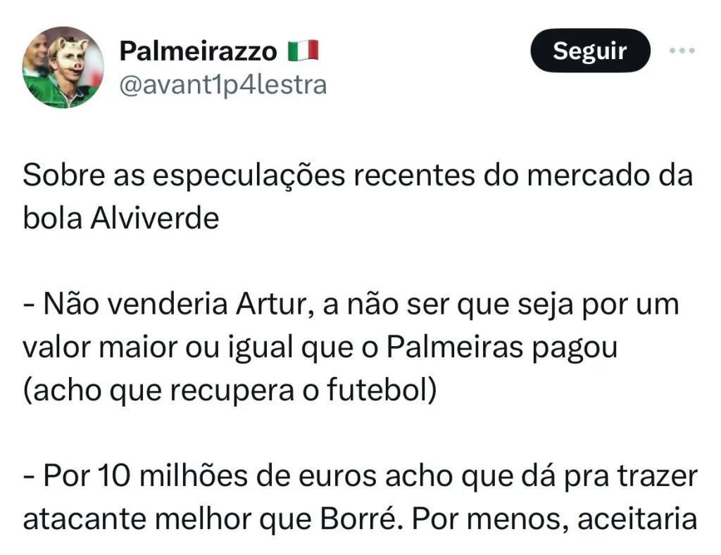 Possível venda de Artur é comentada por palmeirenses