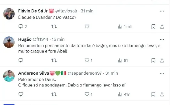 Além do Palmeiras, o meio-campista também recebeu sondagem do Flamengo. Evander foi revelado pelo Vasco e se destacou depois que se transferiu para o futebol europeu.