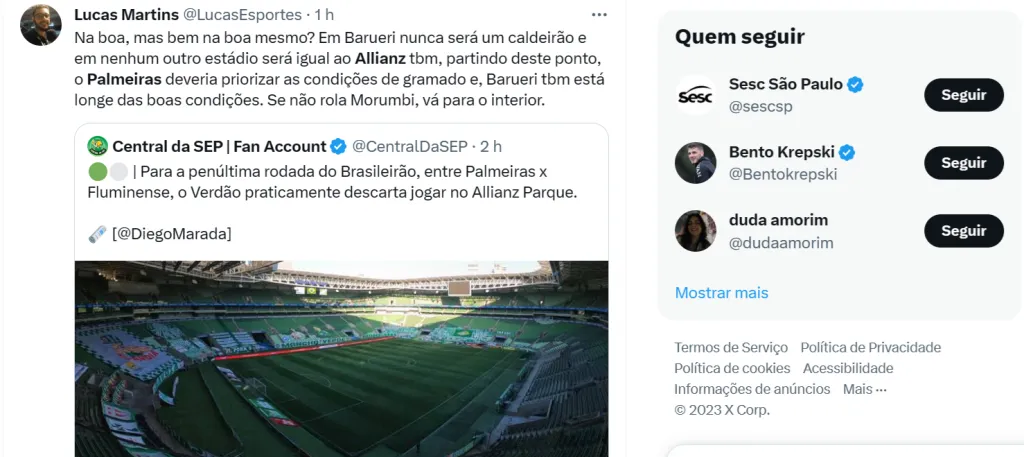 Nos dias citados como reservados para os jogos da rodada 36 (29 ou 30 de novembro), o Allianz Parque não tem shows. Na rodada seguinte, no dia 3/12, o Verdão enfrenta o Fluminense também na arena, só que há o espetáculo ‘Amigos’ para o dia 2.