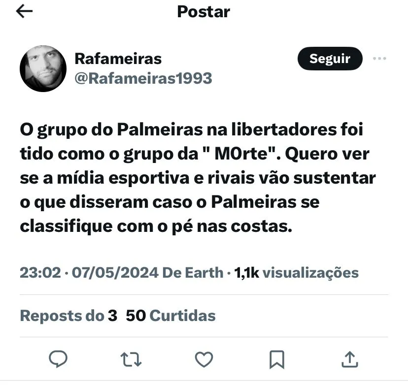 O jogo terá a transmissão pelo canal Paramount+. A equipe comandada por Abel Ferreira tem sete pontos conquistados e é o líder do Grupo F. Já o adversário da noite soma quatro pontos e ocupa a terceira colocação.