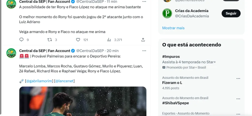 Após vencer a partida de ida por 4 a 0 na Colômbia, o Palmeiras volta a enfrentar o Deportivo Pereira pela Libertadores. Logo mais, às 21h30 (horário de Brasília), o time de Abel Ferreira poderá até perder por três gols de diferença que, ainda assim, garante vaga nas semifinais do torneio continental pelo quarto ano consecutivo.