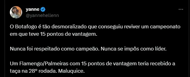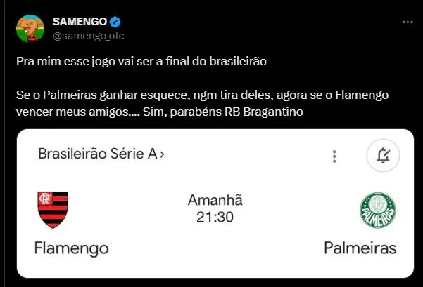 E como ficará o Palmeiras em caso de derrota? O time de Abel precisará secar novamente o Botafogo e também Grêmio e Bragantino. Vale destacar que um revés para o Flamengo, ainda botará o adversário na briga pelo título de novo.