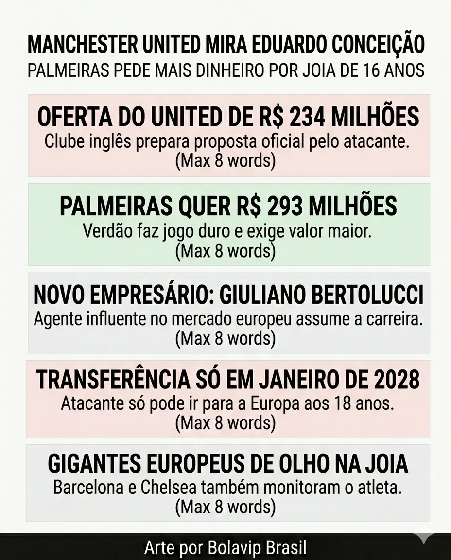 Após interesse do Manchester City na joia do Palestra de 16 anos, o rival Manchester United entrou na ‘guerra’ nos bastidores para contratar o atacante do clube paulista e prepara oferta de 40 milhões de euros (R$ 234 milhões), segundo informações do UOL Esporte.