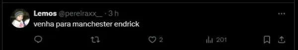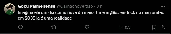 Em sua página oficial, o clube inglês destacou a fala de Endrick feita na entrevista. A equipe publicou uma foto do atacante com a seguinte legenda: “Endrick dedica seu gol pelo Brasil, em Wembley, para Sir Bobby Charlton“.