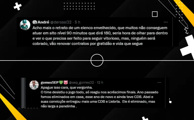 A torcida ficou muito chateada com a eliminação. Um grande palmeirense na história é o ex-goleiro e ídolo Marcos. Ele se manifestou nas redes sociais sobre a dor da derrota nesta eliminação precoce.