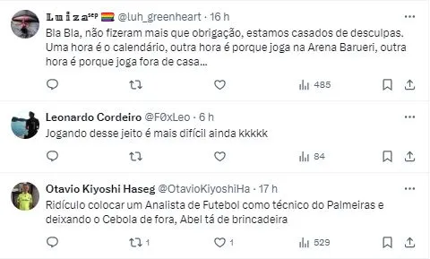 De fato, a vitória não convenceu os palestrinos, que, inclusive, fizeram diversas críticas nas redes sociais. Um dos alvos preferidos foi Rony, a quem foram endereçados comentários pesados.