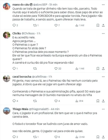 “Peguei muito carinho pelo clube. Se eu voltasse para jogar no Brasil, sei que tenho só um clube para voltar. Pela minha personalidade, eu não volto para jogar em outro time que não seja o Palmeiras“, disse na época, ao portal Nosso Palestra.