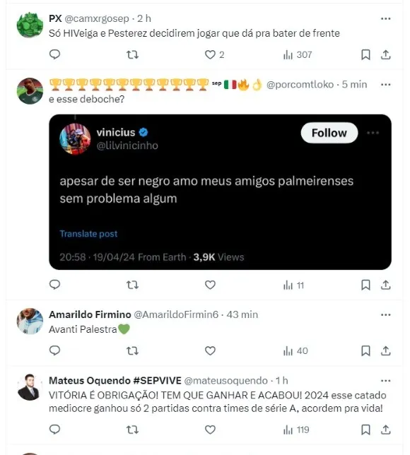 “A torcida nos ajuda muito, tenho certeza de que o Allianz Parque estará lotado. Com a ajuda dos nossos torcedores, somos mais fortes. Vamos com tudo para, se Deus quiser, conquistar um grande resultado“, finalizou.