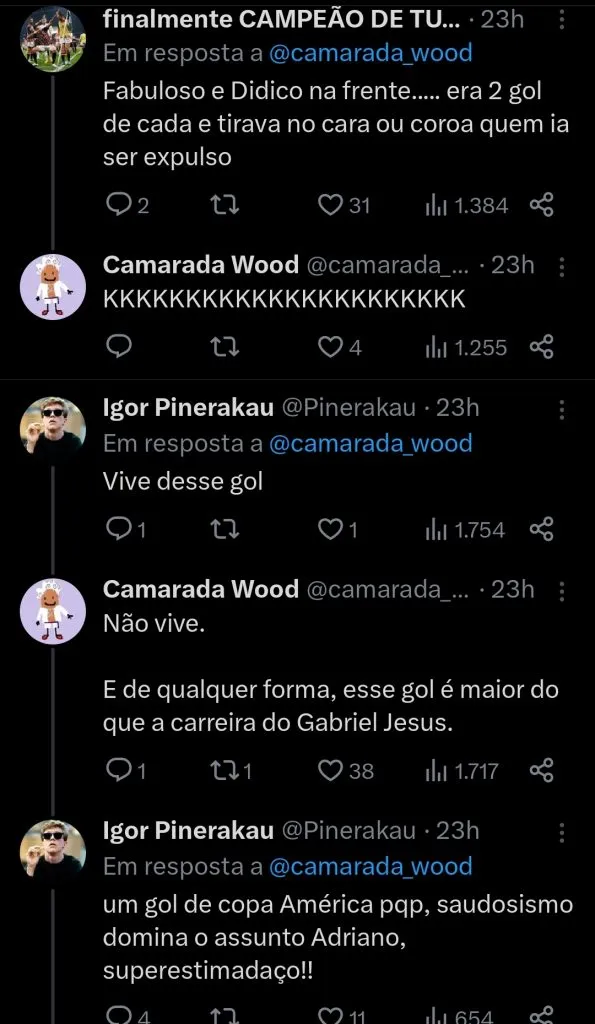 Gabriel Jesus marcou um golaço na vitória dos Gunners pelo placar de 2 a 1 sobre o Sevilla, fora de casa, e levantou a discussão sobre ter passado à frente de Adriano.