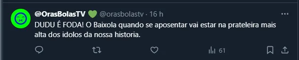 Um dos assuntos que repercutiu entre os palmeirenses nas últimas horas foi a mensagem publicada por Dudu ao ex-atacante do Cruzeiro. Não à toa, a atitude do camisa 7 gerou até pedidos para que ele voltasse a ser o capitão do Verdão. Confira um trecho da mensagem: