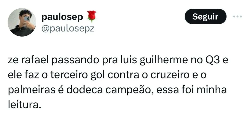 Zé Rafael rasga elogios ao elenco do Palmeiras