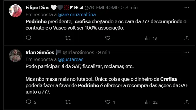 O próprio Lamacchia aproveita o momento para prometer apoio a Pedrinho caso o canhoto consiga virar presidente do Vasco da Gama: “Estou aqui com meu amigo Pedrinho, candidato à presidência do Vasco da Gama. Se ele for eleito, eu darei todo o meu apoio a ele, e à torcida do Vasco da Gama. Podem ter certeza que será um grande presidente, com o meu apoio e com o que eu puder fazer por ele”, disse o empresário, que tem contrato com a SEP até 2024.