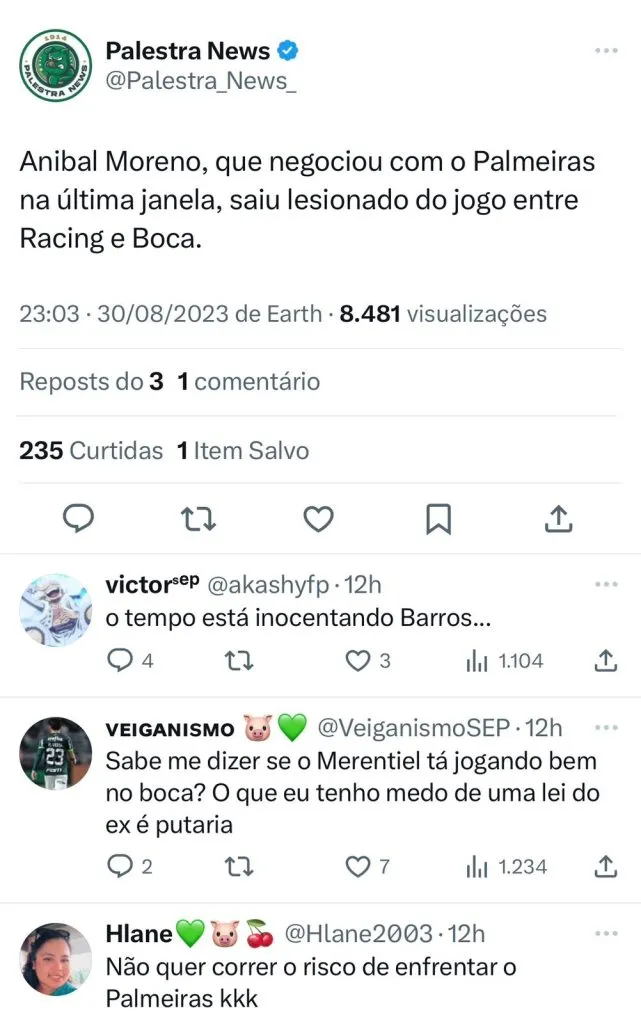 O Palmeiras deveria invrstir na contratação de Anibal Moreno na próxima janela?