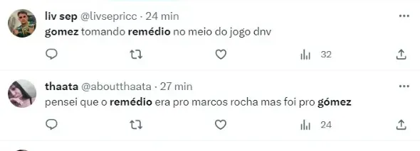 O camisa 2 restava pedindo medicação para o zagueiro Gustavo Goméz. Aparentemente, o zagueiro paraguaio estava reclamando de alguma situação de dores, mas a transmissão do Premiere não conseguiu identificar o motivo para o atleta ter pedido o remédio e também qual seria a medicação.