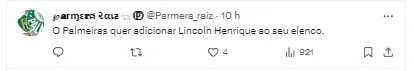 Lincoln surgiu na mesa do Palmeiras
