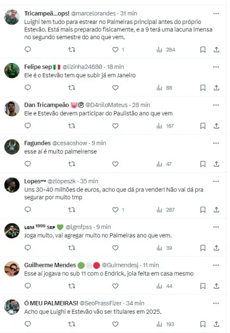 Nessa linha, segundo apurou a ESPN, o Verdão já vem sendo constantemente assediado, tendo recebido sondagens de equipes italianas para saber as condições de um possível negócio por Luighi, que disputa o Mundial Sub-17.
