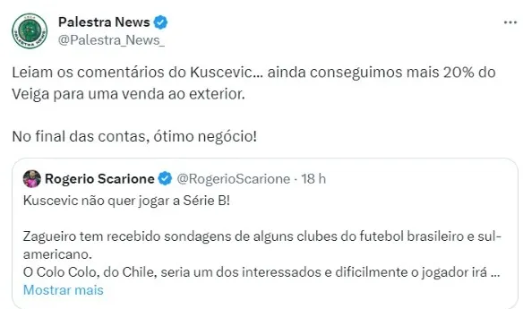 Na ocasião, o Verdão ainda embolsou cerca de R$ 3 milhões pela negociação, além de receber 20% dos direitos econômicos de Raphael Veiga, que ainda tinha um percentual no Coxa.